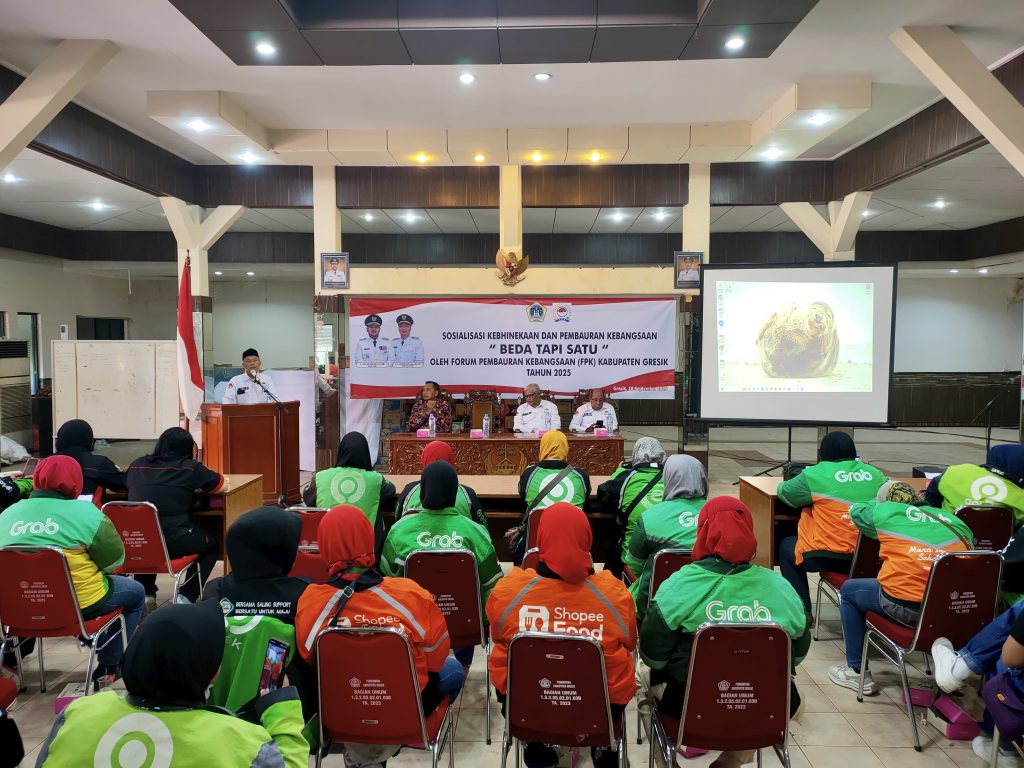 Forum Pembauran Kebangsaan (FPK) Kabupaten Gresik menggelar sosialisasi pembauran kebangsaan kepada komunitas perempuan ojek online yang tergabung dalam Gerakan Sayang...